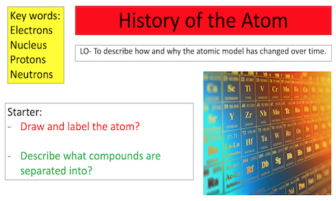 Designed for the new specification AQA GCSE( covers spec point 4.1.1.3 ) course but can be modified for other exam boards.