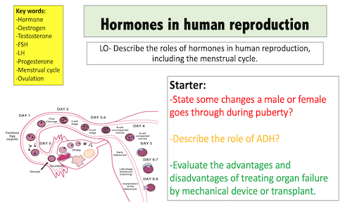 -Be able to extract and interpret data from graphs showing hormone levels during the menstrual cycle