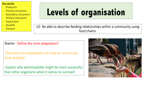 10 slides covering Levels of organisation: